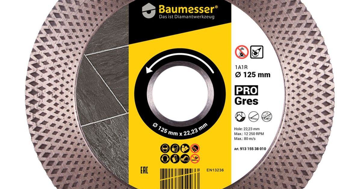 Диск-фреза 1А1R PRO Gres на лицьовій стороні має широкий алмазоносний шар 20 мм. Крім різання, широкий шар дозволяє ефективно виконувати підшліфовку торця плитки, зашліфовувати нерівності, виконувати криволінійне різання.