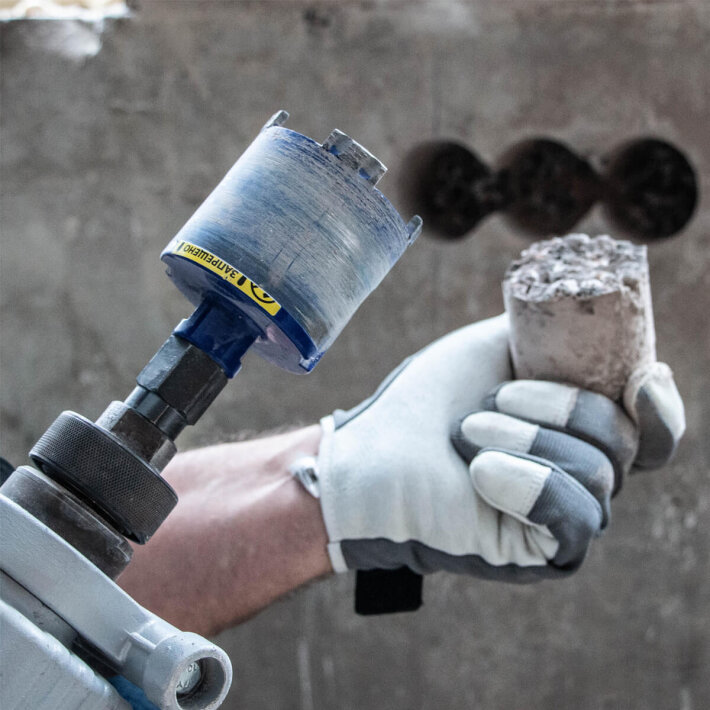 Алмазні свердла на відміну від коронок з твердосплавними ріжучими елементами заборонено використовувати в ударному режимі.
