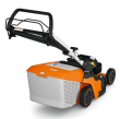 За допомогою маневреної газонокосарки STIHL RM 443 догляд за середніми та звивистими газонами стає як найлегшим. Ширина скошування 41 см, колеса з плавним ходом і легкий та надійний полімерний корпус забезпечують високу маневреність. Завдяки функції легкого запуску ви можете запустити двигун з мінімальними зусиллями. Завдяки стандартному оснащенню мульчувальним ножем, інтегрованою функцією мульчування та боковим викидом, ця газонокосарка підходить як для класичного косіння, так і для мульчування. Ви можете збирати скошену траву у кошик або розподіляти її по газону за допомогою бокового викиду.