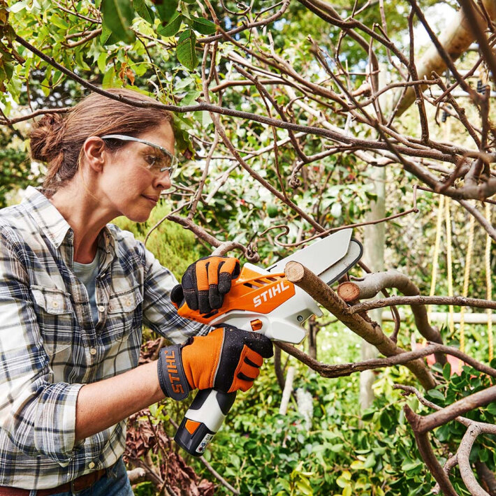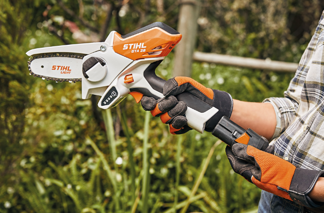 Акумуляторна міні-пила STIHL GTA найкращий вибір для садових, столярних робіт, зручна для роботи правою або лівою рукою, ідеальний варіант як чоловікам так і жінкам для робіт у саду, домашньому господарстві, обрізки дерев, гілок, бруса. Універсальний ріжучий інструмент оснащений 1/4-дюймовим пиляльним ланцюгом Picco Micro 3 який довго тримає гостроту, виконує акуратний тонкий різ зменшує навантаження на мотор. STIHL GTA 26 ідеально підходить для точного обрізання дерев, чагарників, також виконає більш важкі завдання, які виконують бензопилами. Цей "дитина" потужний, витривалий і мобільний, його ергономічна форма забезпечує комфортну роботу, а гнучкий захисний кожух забезпечує додаткову безпеку. Буде надійним помічником на будівництві, де задіяна підрізка дощок, і в важкодоступних місцях. Ідеальний для роботи на висоті для різання гілок діаметром 1-12 см.