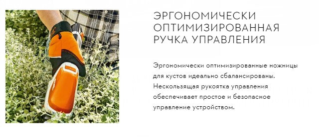 Легкі та компактні акумуляторні ножиці з кустарними ножами для укорочення та догляду за дрібними, вічнозеленими огорожами та дрібно листяними декоративними деревами. Ніж із чагарником із оптимізованою геометрією ножа STIHL для оптимальних результатів різання. Із ножем для трави також для стрижки країв газону. Не ковзний держак управління для ідеальної ергономіки, швидкої заміни ножів без інструментів, з індикатором стану зарядки для постійного спостереження за місткістю батареї. Акумулятор AS 2 підходить тільки для продуктів системи AS і не сумісний з HSA 25. Акумулятор сумісний з мініпилкою GTA 26
