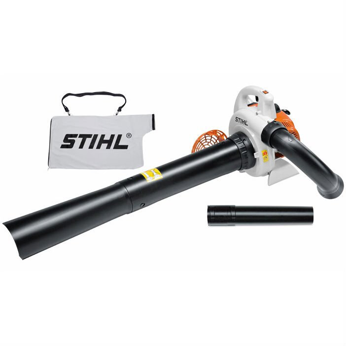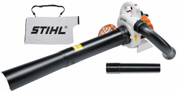 Подрібнювач Stihl SH 56 з високою всмоктувальною здатністю. Ідеально підходить для всмоктування листя та іншого легкого сміття з доріжок, канавок, кутів тощо. Потужна подрібнююча зірочка з високоякісної сталі зменшує об'єм сухого листя у співвідношенні 1 до 14 і оптимально наповнює великий текстильний мішок. Інструмент серійно оснащений насадкою для переобладнання в повітродувний пристрій.