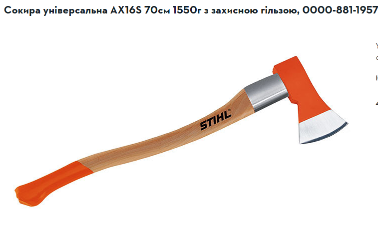 Сокира універсальна AX16S 70см 1550г з захисною гільзою, 00008811957