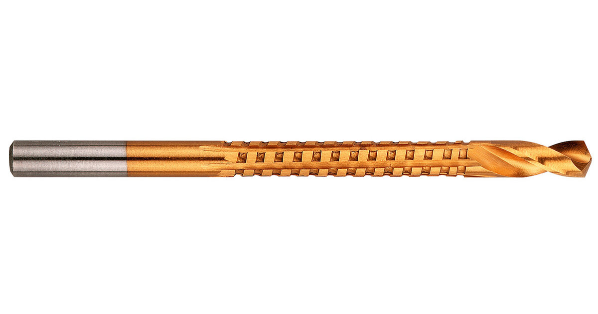 Фрезерне свердло зі сталі HSS з особливо ефективною фрезерною спіраллю, перехресне заточення 135° згідно з DIN 1412 C, покриття з нітриду титанаНайкраще підходить для свердління та фрезерування будь-яких контурів в листовому металі та інших тонких матеріалах